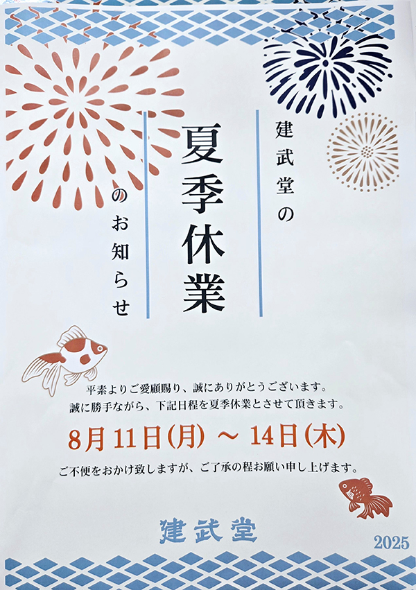 今後とも、建武堂をよろしくお願い申し上げます。